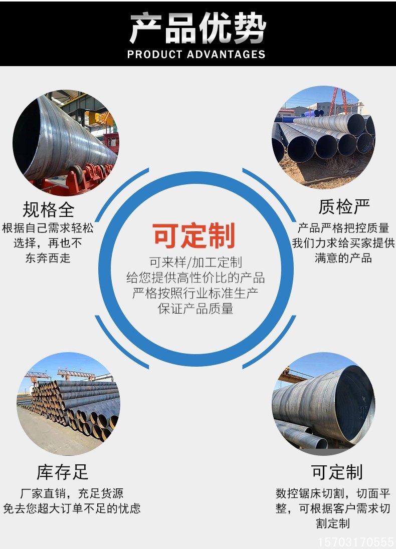 4. **广泛应用**:产品可用于页岩气、石油、天然气、矿浆输送,自来水、污水工程、热网改造等工程,同时在打桩、桥梁、钢结构等方面也得到广泛的应用。